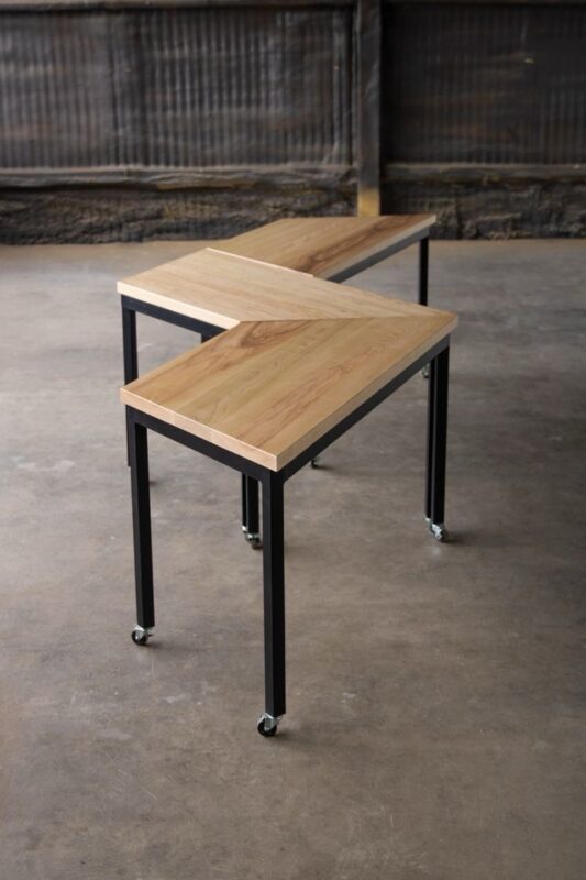 Bisa digunakan sendiri sebagai coffee table, staff table atau meja belajar. Bagian kakinya menggunakan roda sehingga mudah untuk kita menggeser atau membentuk susunannya.