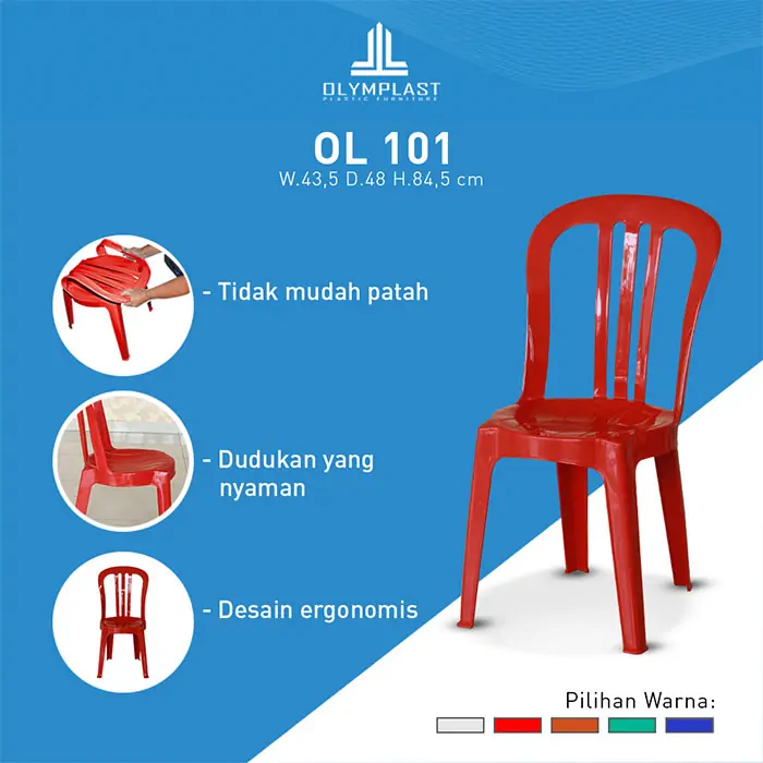 Kursi Plastik Olymplast OL 101-Biru | Jual Aneka Jenis Furniture Kantor, Menyediakan Berbagai Furniture Kantor Modern Dengan Desain Minimalis. Produk Yang Tersedia Baru & Tidak Bekas / Second Serta Terdapat Berbagai Jenis | Harga Mulai  Rp 150.000 – Rp 3.000.000 | Alamat Toko / Pusat Grosir & Service Jl. Jamika No.130 Kec. Babakan Ciparay, Kel. Sukahaji, Kota Bandung 40231 Jawa Barat | Website kursikantor.co.id | Nomor Telepon / Whatsapp 08112220855